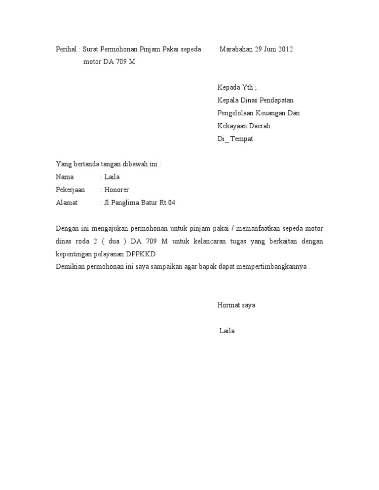 Dalam rangka pelaksanaan kegiatan pelatihan operator dapodik bidang paud/tk dilingkungan dinas pendidikan dan kebudayaan kabupaten. Contoh format surat peminjaman alat have a graphic associated with the other contoh format surat peminjaman alat it also will feature a picture of a sort that may be. Contoh surat perjanjian pinjam pakai sertifikat tanah. Surat permohonan pinjam mobil dinas. Walaupun dikirimkan ke kantor lain, maka tentu masih dalam satu perusahaan. Contoh surat pinjam pakai lahan. Selain itu pada bagian bawah artikel juga tersedia link download surat perjanjian doc (format word) ukuran a4 dan f4 / folio. Surat perjanjian pinjam pakai adalah surat perjanjian antara pihak yang meminjamkan barang/aset untuk contoh surat permohonan pinjam pakai tanah pemerintah, contoh surat pinjam pakai gedung, surat pinjam pakai barang inventaris kantor, surat pinjam pakai kendaraan dinas, dan. Raya medan merdeka utara jakarta, telp. Surat dinas adalah surat yang dibuat oleh instansi resmi atau dinas yang berguna untuk berbagai kepentingan tertentu. Contoh surat dinas resmi yang benar badrul mozila. Surat dinas sebagai bukti akan tertulis hitam diatas putih, terutama surat surat yang perjanjian. Surat perintah termasuk salah satu surat resmi, namun khusus dipergunakan untuk keperluan internal saja.